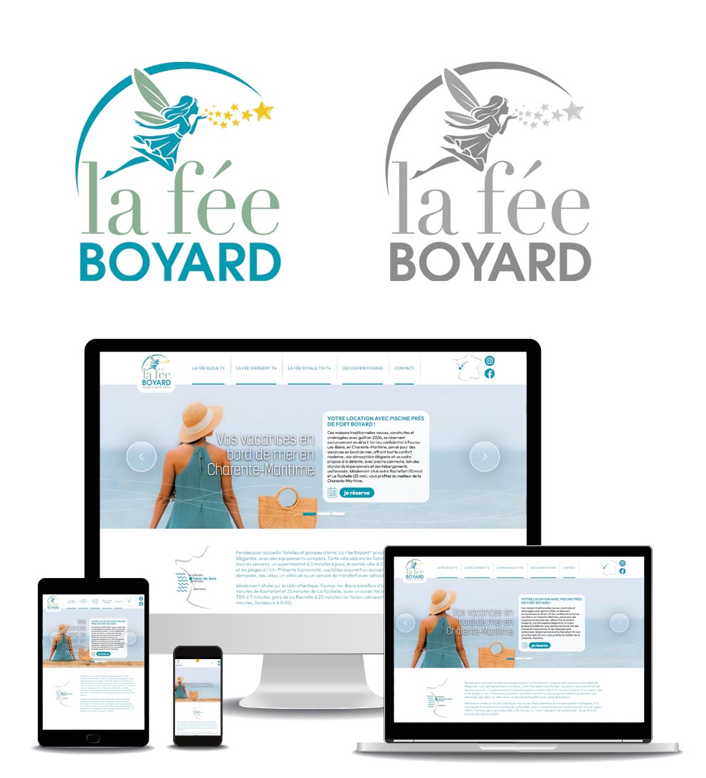 Conception du logotype et web design du site internet La Fée Boyard, dédié à une particulière proposant la location de deux maisons de charme à Fouras-les-Bains. Développement du site réalisé par Les Comnambules pour une présence en ligne moderne, responsive et attractive.